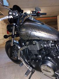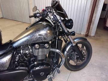 Colorazione Triumph Limited Silver Marble (Marmo di Liverpool). Moto perfetta, tagliandata ogni anno compreso il 2025. Optional originali Triumph: Stemmi cromati Triumph sul serbatoio, tappo serbatoio con chiave, sella passeggero comfort Triumph, portapacchi posteriore, schienalino passeggero completo, borsa originale Triumph(praticamente nuova), cupolino MRA, lampade led d-gear (made in Italy) luce led bianca 6000k lampada di posizione, anabbagliante e abbagliante su faro originale, cavalletto Becker Technik che solleva la moto in garage come se fosse il cavalletto centrale di un enduro...totale Optional tranquillamente più di 1.500 euro, oltre a optional 2024 vedasi ultima foto : Bib Mustang pelle nera, specchietti neri e manopole cromate, tutto direttamente dagli U.s.a. (relativi pezzi originali sempre disponibili). La uso poco purtroppo (1.000/2.000 km all'anno), la vendo o scambio con una moto custom, sport tourer, enduro almeno euro 4 per entrare in centro a Milano, garantisco assoluta serietà e la richiedo a chi sarà realmente interessato, sono disponibile per qualsiasi informazione/prova. Se interessa ho la possibilità di venderla con garanzia 12 mesi e piano di finanziamento. A questo prezzo è un vero affare, Marco.