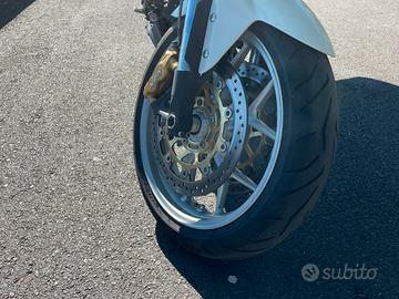 Causa nascita bimba, devo cedere a malincuore questo gioiellino della motociclistica. Per chi conosce questo modello, sa di cosa parlo. Km 111000 ma revisionata in ogni sua parte. I lavori piu importanti sono stati il cambio gomme, il kit di trasmissione e i dischi freno. In pratica e’ stata smontata e rimessa a nuovo, gira come fosse uscita ieri dal concessionario. Disponibile per qualsiasi prova e in tutte le condizioni. Includo anche le valige laterali e il baule (credo sia 20 lt). Avrei anche due caschi bianchi integrali e modulabili con interfono. Non sono in ottime condizioni ma se servono con un piccolo extra ve li do’ (uno taglia xl e l altro l). Grazie