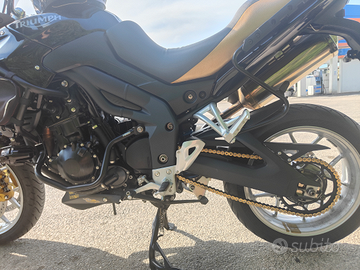 La moto ha numerosi optional: Struttura crush bar / para motore superiore ed inferiore, protezione griglia per radiatore con motivo a nido d'ape, sella in gel con ricami color oro, cupolino fumè touring, luci a led con faretti supplementari, paramani originali Triumph, manopole dytona, specchietti sportivi, telaietto Givi per predisposizione tris valigie, bauletto Givi con schienale integrato, contamarce, misuratore elettronico pressione pneumatici, ecc..