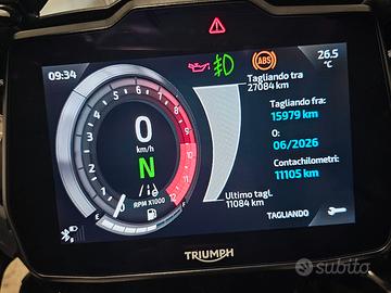 moto perfetta full optional mai off-road mai caduta completa di tris di borse moto in garanzia fino agosto 2026. TAGLIANDI CERTIFICATI TRIUMPH. No Scambi o Permute