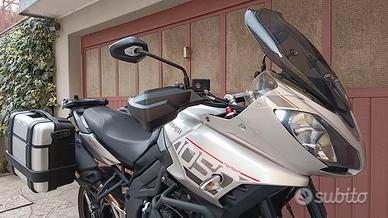 Splendida Tiger 1050, utilizzata solo per turismo e gite fuoriporta. La moto si presenta in eccellenti condizioni meccaniche ed estetiche. Gomme nuove, tagliando eseguito nel mese di giugno 2022 (nel 2024 e fino ad oggi la moto è stata in garage). Accessori: ABS, Controllo di trazione, 3 mappature , Cruise control, Computer di bordo, Borse laterali e Bauletto, Sella originale, Manopole riscaldabili, Frecce a led disponibili (la moto monta le originali). Pneumatici nuovi (montati giugno 2022), Doppie chiavi disponibili. Vendo a malincuore per scarso utilizzo, dovuto a ragioni familiari. È un missile, veloce, comoda, stabile anche in coppia con consumi contenuti.