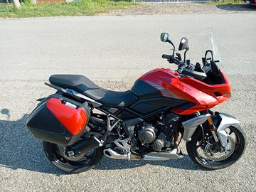 Triumph tiger sport 660, 81cv 660 cc, unico proprietario. Accessori originali: borse con cover in tinta più cover nere, paramani, manopole riscaldate, puntale paramotore in tinta. Tagliandi ufficiali Triumph, ultimo eseguito a luglio 2025 con sostituzione pneumatici Metzeler.