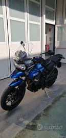 Moto molto bella in colorazione blu con becco in tinta, cruise control, ABS, sella doppia altezza, doppia chiave accensione, sempre tenuta in garage. Batteria Yuasa di 2 anni. A fine maggio 2025 è stato sostituito il set corona/catena/pignone DID, gomma posteriore, liquido freni, cambio filtro aria e candele (circa 700 euro di lavori con fattura). Set di valigie e bauletto posteriore a parte, supporti laterali e posteriore inclusi (Givi monolock o Kappa) .