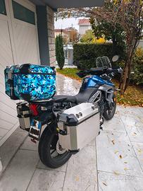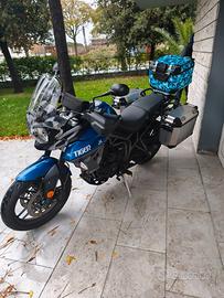 Monta scarico Arrows in Titanio, in dotazione anche originale, bauletto Givi wrappato mimetico marina militare, in dotazione anche valige originali Triumph.