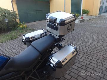 completa di bauletto e coppia di valige laterali in alluminio, originali Triumph apribili con la stessa chiave del blocchetto di accensione.
