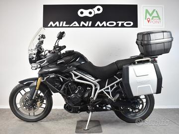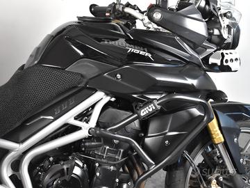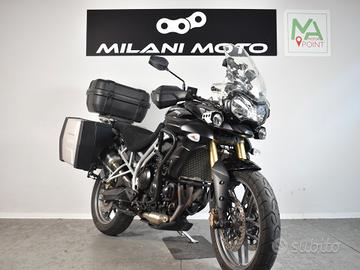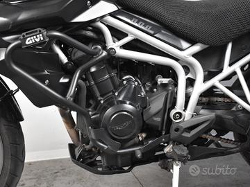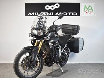 Accessori inclusi: Borse laterali Triumph, bauletto Kappa, faretti supplementari Triumph, cavalletto centrale, gabbia paramotore Givi, scarico Mivv.