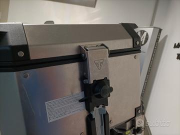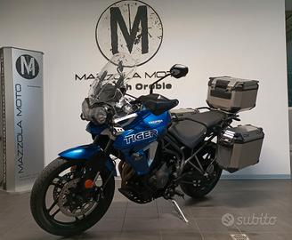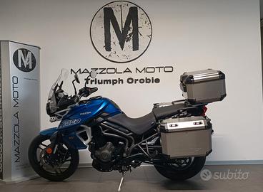 Accessori : Versione LOW-Ribassata con Tris valigie in alluminio, Faretti di profondità , Manopole riscaldabili ed adesivo a protezione serbatoio tutto originale Triumph, oltre alla flangia Tank Look Givi a serbatoio.