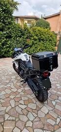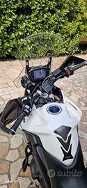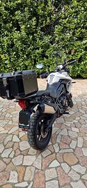 Vendo Triumph Tiger 800 XRx nell'iconica colorazione Crystal White. Si tratta della versione aggiornata con oltre 200 modifiche al telaio e al motore rispetto alla serie precedente, caratterizzata da un'erogazione più pronta e una dotazione tecnologica di altissimo livello. MOTORE E PRESTAZIONI: Motore: Tre cilindri in linea, 800cc, raffreddato a liquido. Potenza: 95 CV (70 kW) - Coppia massima di 79 Nm. Scarico: Originale alleggerito con sound caratteristico Triumph. Cambio: 6 marce con prima marcia più corta (ottima per il controllo a basse velocità e off-road leggero). ELETTRONICA E TECNOLOGIA: Display TFT: Schermo a colori da 5" regolabile nell'angolazione. Riding Modes: 4 mappature (Road, Rain, Off-Road, Sport) che agiscono su risposta acceleratore, ABS e Traction Control. Cruise Control: Di serie, attivabile comodamente dal blocchetto sinistro. Illuminazione: Fari DRL a LED e indicatori di direzione a LED. Comandi: Blocchetti retroilluminati (fondamentali per la guida notturna). CICLISTICA E COMPONENTISTICA: Freni: Doppio disco anteriore con pinze Brembo ad attacco radiale (frenata potente e modulabile). Sospensioni: Forcella Showa da 43mm e monoammortizzatore Showa posteriore regolabile nel precarico. Cerchi: In lega (19" anteriore / 17" posteriore), perfetti per la massima stabilità nei curvoni stradali. Pneumatici: Nuovi, Bridgestone Trasmissione: corona, pignone e catena nuovi ACCESSORI E DOTAZIONE EXTRA: Top Case: Bauletto in alluminio nero ad alta resistenza (capacità per un casco integrale + extra). Protezioni: Barre paramotore laterali originali + Piastra paracoppa in alluminio spazzolato. Comfort: Cupolino Touring regolabile in 5 posizioni e paramani integrati. Utility: Supporto smartphone universale e presa 12V/USB.