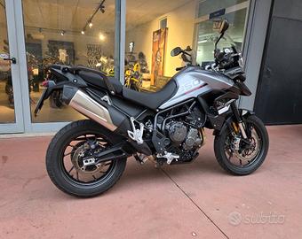 Tiger 850 Sport Abs 07/2024 KM 3900 Possibilità di Finanziamento e Consegna in tutta Italia MOTORE E TRASMISSIONE Motore Raffreddato a liquido, 12 valvole, doppio albero a camme in testa, 3 cilindri in linea Cilindrata 888 cc Alesaggio 78.0 mm Corsa 61,9 mm Rapporto di compressione 11,27:1 Potenza Massima (CE) 85 CV (65.2 kW) a 8.500 giri/min. Coppia Massima 82 Nm a 6.500 giri/min. Sistema di iniezione elettronica sequenziale multipoint Scarico Impianto di scarico 3 in 1 in acciaio inossidabile. Trasmissione finale Catena O-ring Frizione multidisco a bagno d'olio, assistita Cambio 6 rapporti TELAIO Telaio tubolare in acciaio, telaietto posteriore imbullonato Forcellone Bi-braccio in lega di alluminio Ruota Anteriore In lega, 19" x 2,5" Ruota Posteriore In lega, 17" x 4,25" Pneumatico Anteriore 100/90-19 Pneumatico Posteriore 150/70R17 Sospensione Anteriore Forcella Marzocchi a steli rovesciati da 45 mm, non regolabile Sospensione Posteriore Sospensione posteriore Marzocchi, regolazione manuale del precarico, escursione 170 mm Freno Anteriore Doppio disco flottante da 320 mm, pinze radiali monoblocco Brembo Stylema a 4 pistoncini. Pompa freno anteriore radiale, ABS Freno Posteriore Disco singolo da 255 mm. Pinza scorrevole Brembo monopistoncino, ABS Strumentazione e Funzioni Strumentazione TFT da 5" DIMENSIONI E PESO Larghezza Manubrio 830 mm Altezza Senza Specchietti 1.410-1.460 mm Altezza Sella 820-840 mm Interasse 1.556 mm Angolo di Inclinazione 24,6 º Avancorsa 133,3 mm Peso 192 kg Capacità Serbatoio 20 L CONSUMO DI CARBURANTE Consumo Carburante 5,2l/100 km