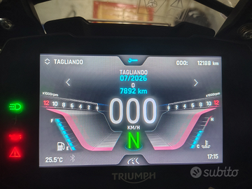Vendo come da titolo, la moto è stata immatricolata ad agosto 2023, ha 12,500 km circa. Ha eseguito i tagliandi presso Triumph ufficiale e sono l'unico proprietario. Sono stati cambiati i copertoni a Febbraio 2025 ed hanno 1000 km all'attivo, lo scorso 4 Luglio ho effettuato il tagliando in triumph. La moto è stata sempre tenuta in garage ed oltre al baule viene venduta corredata di valigie GIVI trekker(sono abbinate al baule) e telai specifici, che non ho avuto modo di montare. Sono stati comprati entrambi(valigie e telaietti) un mese fa e mai usate. Come si vede dalla terza foto ha una sverniciatura sul serbatoio dovuta ad una caduta da fermo.