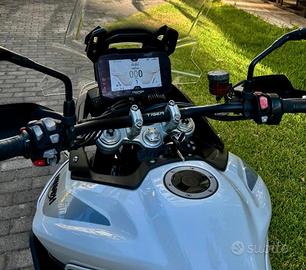 Motorium Palermo vi propone in vendita una Bellissima Triumph Tiger 900 GT Pro, Bianca, immatricolata il 05/2021; si tratta di una moto crossover molto versatile e confortevole; ideale sia per un utilizzo cittadino che per lunghi viaggi all'insegna del confort e del piacere di guida grazie al suo motore potente e reattivo. La moto si presenta in ottime condizioni, percorsi 29500km, sempre tagliandata presso Triumph. La moto e corredata di allarme, Top case originale Triumph, bloccadisco Triumph, cupolino fontale GI.VI a piu altezze montato aftermarket oltre al cupolino originale Triumph. Non si accettano permute. _____________________________________________________________________________________ *richiedi il tuo preventivo di finanziamento personalizzato in filiale* *Visibile solo su appuntamento.* Servizi offerti dalla filiale Motorium Palermo: - finanziamento da 12-84 mesi, anche con anticipo 0 - garanzia o estensione attivabile su richiesta 12-36 mesi - gestione burocrazia e passaggio di proprieta e/o radiazione - assistenza personale Motorium Palermo - possibilita di trasporti nazionali ed internazionali - ampia scelta su vetture KM.0 - noleggio a lungo termine 12-60 mesi su una vasta gamma di vetture. La dotazione tecnica e gli accessori indicati nella presente scheda potrebbero non coincidere con l'effettivo equipaggiamento del veicolo, a causa della non uniformita dei dati pubblicati dai diversi portali. Ci scusiamo per l'inconveniente e vi invitiamo a verificare le caratteristiche dello specifico veicolo. Si declina ogni responsabilita per eventuali involontarie incongruenze, che non rappresentano in alcun modo un impegno contrattuale. Allarme, Baule, Cupolino,