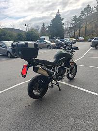Vendo Triumph Tiger 900 Rally di metà 2021, acquistata nuova presso concessionario ufficiale triumph di Savona, UNICO PROPRIETARIO, moto in perfette condizioni, utilizzata da pensionato esclusivamente su strada per giri tranquilli in compagnia di altri pensionati, mai pista/fuoristrada. Pulita/lavata/asciugata di frequente. SEMPRE TENUTA AL COPERTO IN BOX PRIVATO. Tagliandi sempre effettuati in concessionario ufficiale triumph a cadenza annuale (non arrivava a fare i km nell'arco dell'anno) Km totali 23,000 circa. Gomme sia ant che post con all'attivo 1000 km circa. Moto totalmente originale Revisione valida fino ad ottobre 2027 Sella regolabile in più posizioni Motore 3 cilindri iconico triumph 12 valvole Cilindrata 900 cm3 Cavalli 95 / 70 kw Fari full led Parabrezza regolabile in piu posizioni Doppie chiavi Serratura bauletto uguale a quella di accensione Sospensioni anteriori e posteriori completamente regolabili Doppi dischi anteriori ABS davanti e dietro Display 7 pollici Sistema di sicurezza antimpennamento 4 modalità di guida selezionabili (road/rain/sport/off-road) Triumph shift assist (cambi di marcia senza frizione) Sistema di frenata d'emergenza Controllo di trazione/traction control Sensori pressione pneumatici Cambio 6 marce forcelle marzocchi 45 Impianto frenante anteriore doppio brembo da 320mm a 4 pompanti Connettività my triumph Peso 194 kg a secco Consumi circa 20km/lt OPTIONAL; - Para motore dx/sx bianco Hepco&becker montato da concessionario triumph - Bauletto singolo posteriore con poggiaschiena integrato ufficiale triumph - Case stagno porta telepass - Braccio orientabile porta telefono La moto è pronta all'utilizzo, non necessita di alcun lavoro. Passaggio a carico dell'acquirente. Prezzo discutibile esclusivamente dopo la visione. Visionabile previo appuntamento dal lunedì al venerdì dalle 8:30/12:30 14:30/18:30 ad Arenzano (genova) Disponibile per qualsiasi prova Sono pregati di astenersi so