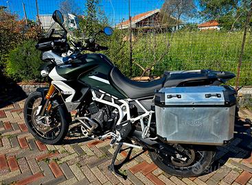 Vendo Triumph Tiger 900 Rally Pro 2020 in eccellenti condizioni. 👉 Unico proprietario, sempre garage. 👉 Moto pronta per la stagione, nessuna spesa da fare. 📌 Dati principali: Immatricolazione: settembre 2020 Km: 43.000 Versione: Rally Pro (top di gamma) Colore: verde militare 📌 Manutenzione: Sempre tagliandata presso officina ufficiale Triumph - disponibile attestato tagliandi dell'officina dall'acquisto ad oggi; Ultimo tagliando aprile 2026!!! Pneumatici nuovi febbraio 2026!!! 📌 Accessori: Valigie originali Triumph in alluminio Sella tecnica personalizzata Vulcano Porta cellulare tecnico sopra sterzo 📌 Condizioni: Moto in ottimo stato generale, sempre tenuta con grande cura. Normali segni d’uso coerenti con il chilometraggio. 💰 Prezzo: € 9.800 leggermente trattabili 📍 Disponibile per visione e prova su appuntamento. Possibilità di richiedere finanziamento per l'acquisto. No perditempo No permute.