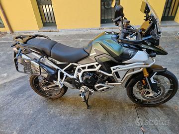 Triumph Tiger 900 Rally Pro perfetta! Immatricolata Marzo 2024 usata solo per brevi tragitti (5250km) tagliandata presso concessionario Triumph, gommata al 90%. Colore Verde Khaki Green, protezioni serbatoio, protezione radiatori in alluminio, protezione faro anteriore (tutti originali Triumph). Installato anche telaio per borse morbide off-road. Prezzo del nuovo (colore Green + accessori triumph) 18.836,66euro da configuratore sito Triumph. Vendo a 15.000euro per inutilizzo
