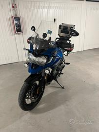 Immatricolata maggio 2017 – circa 47.000 km Unico proprietario. Manutenzione eseguita regolarmente presso rete ufficiale Triumph ogni 10.000 km. Ultimo tagliando appena effettuato con, tra le altre cose: pulizia corpi farfallati, controllo gioco valvole e fasatura albero a camme come da programma di manutenzione. Fattura e storico tagliandi Triumph disponibili. Moto sempre custodita in box e utilizzata esclusivamente su strada. Condizioni estetiche e meccaniche ottime. Disponibile per qualsiasi verifica. Dotazione di serie XCX •Cupolino regolabile elettricamente •Cruise control •Traction control e ABS •Sospensioni semi-attive WP TSAS regolabili su 12 livelli •3 modalità di guida: Road, Rain, Off-road •Manopole riscaldate •2 prese 12V •Cerchi a raggi tubeless con valvole in ergal Accessori originali Triumph installati •Plexiglass protezione faro •Faretti supplementari LED •Tris valigie Triumph con top case e poggiaschiena •Scarico Arrow Exhaust in titanio con fondello in carbonio Installato inoltre navigatore TomTom Rider 550 alimentato direttamente dall’impianto della moto.