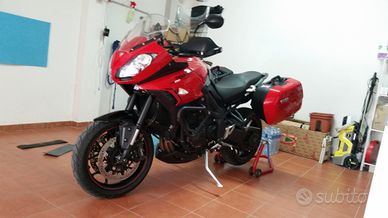 Vendo tigersport per cambio tipologia di moto. Moto con 49000km. Con sospensioni anteriori e posteriore hyperpro , cupolino fabri , scarico arrow originale triumph, paramotore triumph, paramani triumph, portapacchi artigianale con piastra givi,pastiglie anteriori e posteriori nuove,borse laterali originali, filtro sportivo BMC,mappatura eseguita al banco presso FEMA_motors. Prezzo trattabile.