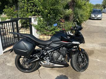Vendo splendida Triumph Tiger Sport 660 immatricolata 2025, in condizioni pari al nuovo, sempre tenuta con la massima cura. Moto estremamente versatile, ideale sia per uso quotidiano che per viaggi, già accessoriata in modo completo. Optional e accessori presenti: Cambio elettronico Quickshifter (up & down) Cruise control (controllo elettronico della velocità) 3 Riding Modes (Rain / Road / Sport) Valigie laterali originali Triumph Borse interne per valigie Cupolino alto maggiorato Paramani Puntale motore Display TFT con connettività ABS e Traction Control Portapacchi posteriore sportivo Valuto proposte serie, no perditempo, no scambi.