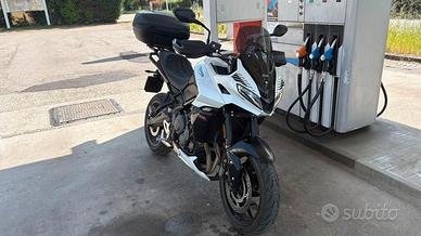 Accessori originali Triumph: puntale sotto motore, paramani, portapacchi con Bauletto, presa USB, nottolini forcellone per cavalletto posteriore, sella premium. Accessori non originali Triumph: base allargata GIVI per cavalletto laterale, cupolino sport fumé WRS. Tagliando effettuato a fine febbraio (600 km fa), prossimo tagliando a febbraio 2027 o tra 15399 km. La moto è stata acquistata da Triumph Verona ed è in garanzia fino a Ottobre 2026. La moto non ha alcun problema o difetto, perfetta di motore e carrozzeria. La vorrei cambiare solo per sfizio personale (è la mia seconda moto). Giusto per le vostre considerazioni, da configuratore (Triumph) la moto così accessoriata costa 10.932 euro (potete facilmente verificare).