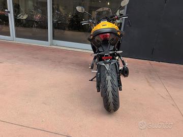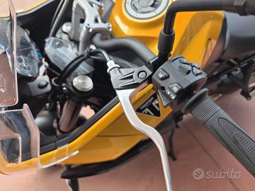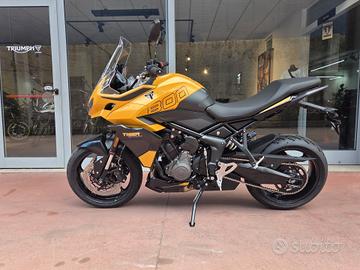 NUOVA TIGER SPORT 800 Colore Cosmic Yellow Pronta consegna Finanziamenti a Tassi agevolati Possibilità di consegna in tutta Italia Si Valutano Permute Motore e Trasmissione Motore Raffreddato a liquido, 12 valvole, doppio albero a camme in testa, 3 cilindri in linea Cilindrata 798 cc Alesaggio 78.0 mm Corsa 55.7 mm Rapporto di compressione 13.2:1 Potenza Massima (CE) 115 PS / 113 bhp (84.6 kW) @ 10,750 rpm Coppia Massima 84 Nm a 8,500 giri/min. Sistema di iniezione Iniezione elettronica sequenziale multipoint Bosch con SAI con controllo elettronico dell'acceleratore. 3 modalità di guida (Rain, Road e Sport) Scarico Impianto di scarico 3 in 1 in acciaio inossidabile con silenziatore laterale Trasmissione finale Catena X-ring Frizione Frizione multidisco a bagno d'olio, assistita Cambio 6 rapporti Telaio Telaio perimetrale in acciaio tubolare Forcellone Bibraccio, in acciaio Ruota Anteriore Cerchio in alluminio a 5 raggi Tubeless 17 x 3,5" Ruota Posteriore Cerchio in alluminio a 5 raggi Tubeless 17 x 5,5" Pneumatico Anteriore 120/70 R 17 Pneumatico Posteriore 180/55 R 17 Sospensione Anteriore Forcelle a cartuccia Showa 41mm, a steli rovesciati con funzioni separate, smorzamento in estensione e compressione regolabile, corsa ruota 150 mm Sospensione Posteriore Monoammortizzatore Showa con smorzamento in estensione regolabile e regolazione idraulica del precarico separata, corsa ruota 150 mm Freno Anteriore Doppio disco flottante da 310 mm, pinze radiali a 4 pistoncini, ABS Cornering Freno Posteriore Disco singolo da 255 mm. Pinza scorrevole Brembo monopistoncino, OCABS Strumentazione e Funzioni Strumentazione multifunzione LCD con display TFT a colori integrato Dimensioni e Peso Larghezza Manubrio 828 mm Altezza Senza Specchietti 1.386 mm / 1.303 mm (posizione parabrezza alto / basso) mm Altezza Sella 835 mm Interasse 1422 mm Angolo di Inclinazione 23.8 º Avancorsa 99 mm Capacità Serbatoio 18.6 L Peso in ordine di marc