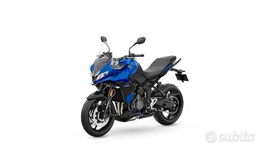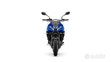 Sospensione Anteriore: Forcelle a cartuccia Showa 41mm, a steli rovesciati con funzioni separate, smorzamento in estensione e compressione regolabile, corsa ruota 150 mm