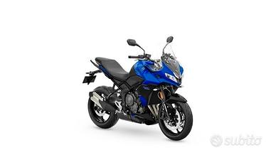 Sospensione Anteriore: Forcelle a cartuccia Showa 41mm, a steli rovesciati con funzioni separate, smorzamento in estensione e compressione regolabile, corsa ruota 150 mm