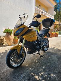 Tiger 1050 del 2007. La moto è perfetta in tutto, ed è completa del tris valigie originali Triumph in tinta con la moto. Deflettore cupolino(facilmente rimovibile eventualmente, doppia sella(una originale ed un'altra in gel), radiatore e valvola termostatica messi nuovi con relativa pulizia dell'impianto di raffreddamento..... Valuto permuta con vespa 125/150 o piccole moto (pit bike ecc ....)