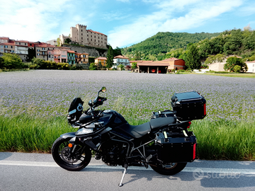 Vendo Triumph Tiger xrx del 2017, con 43.500km, gomme nuove della Dunlop trailmax meridian, tris borse in alluminio originali Triumph, borsa serbatoio sempre originale Triumph,para motore GIVI, griglia para radiatore, griglia proteggi fari, paramani, faretti aggiuntivi,cavalletto centrale,mappe motore, ABS.