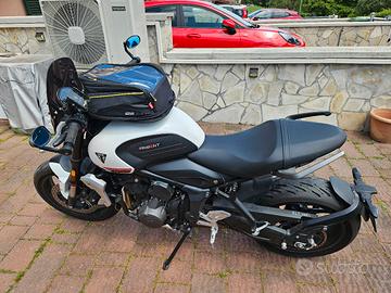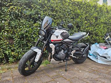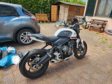 Vendo splendida Triumph Trident 660 immatricolata nel 2021, in condizioni estetiche e meccaniche impeccabili. La moto è pari al nuovo, sempre riposta in garage e curata maniacalmente. Vendo esclusivamente per inutilizzo causa nascita figlio. Dettagli Principali: Chilometraggio: 4.576 km (originali) Potenza: Versione a potenza piena (NON depotenziata) Stato: Batteria nuova, gomme all'80% Manutenzione: Già eseguiti 3 tagliandi di controllo presso Triumph. Documenti: Revisione appena effettuata, Bollo pagato fino a Febbraio 2026 Accessori Inclusi (valore oltre 600€) La moto viene consegnata completa di vari optional per migliorarne estetica e comfort: Specchietti bar-end al manubrio (+ originali inclusi) Paramotore anteriore cromato Maniglie passeggero originali Triumph Cupolino fumè Puig Porta cellulare con presa USB dedicata OMAGGIO: Borsa serbatoio Givi con attacco flangiato Descrizione del mezzo: Il leggendario motore a 3 cilindri Triumph offre un sound inconfondibile e un'erogazione fluida, perfetta sia per la città che per i passi di montagna. Dotata di ABS e Controllo di Trazione di serie. Uno stile classico intramontabile fuso con la tecnologia moderna e dal sound inconfondibile. Prezzo: 5.800 € Note sulla vendita: Si richiede e si offre la massima serietà. No affaristi, intermediari o perditempo. Disponibile per qualsiasi visione previo appuntamento.