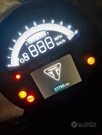 Vendo Trident 660 depotenziata 35kw Accessori: - maniglie passeggero - carter para motore - griglia radiatore con la bandiera inglese (non visibile in foto) - acceleratore per riportarla a piena potenza Tagliandi eseguiti ogni anno prima di incominciare la stagione Le gomme hanno 8000km circa e monta le Dunlop mk3 Unico proprietario Vendo per passaggio a sportiva Scarico Spark nero ceramica vendibile a parte 1000