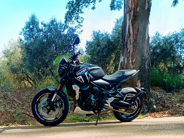 Triumph Trident 660 immatricolata 08/2021 kmt.18500, tagliando eseguito 07/2025 revisione eseguita 08/2025 bollo pagato fino a Luglio 2026 sostituito corona catena e pignone sempre in officina. Gomme DunlopMK3 80% , mai caduta in ottime condizioni e riposta sempre in garage .