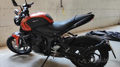 Triumph Trident 660. Immatricolata Maggio 2023. 2707 km. Unico proprietario, sempre tenuta in garage sotto un telo. Con accessori , zaino posteriore originale Triumph e protezioni anticaduta