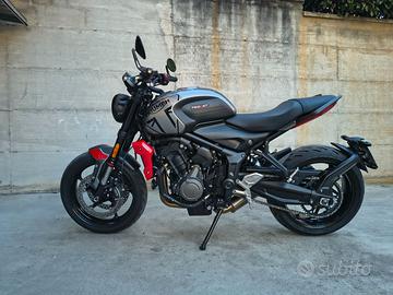 Vendo per cambio tipologia ,Trident 660 agosto 2021, unico proprietario, Km 13159 , moto attualmente in uso , tagliandata tutti gli anni presso concessionaria ufficiale Triumph Torino , Accessoriata con scarico Zard omologato acquistato e montato in concessionaria, maniglie passeggero, portatarga Urbano Bruni , specchietti end bar (aftermarket) scarico originale , specchietti originali , fodere per smontaggio maniglie passeggero sono compresi nella vendita La moto è in condizioni ottime , utilizzata solo sabato/domenica, sempre posteggiata nel box privato