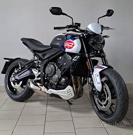 Vendo bellissima Triumph Trident 660 Triple Tribute Edition. Unico proprietario. Anno 2024 KM 4587 Moto in garanzia ufficiale Triumph fino ad Agosto 2026. Naked di media cilindrata, ideale per chi cerca una moto equilibrata, leggera e moto divertente. Motore 3 cilindri da 660 cc Dotazioni di serie: ABS e controllo di trazione Quickshifter Cruise control Frizione assistita antisaltellamento 3 modalità di guida: Sport, Road e rain Connettività TFT: navigazione, chiamate, musica Cambio elettronico Moto perfetta e pronta all'uso. Possibilità di finanziamento personalizzato per importo e durata. Possibilità di consegna, previo accordo. Moto visionabile presso la nostra sede Tiziano Motor, San Colombano al Lambro. Valuto permute con moto, scooter, naked, enduro, motocross, enduro stradale. No moto d'epoca o cinesi.