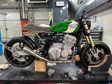 Progetto one-off, curato in ogni dettaglio: telaio modificato, ciclistica rivista, verniciatura personalizzata, finiture artigianali.