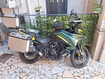 Vendo per altri progetti, nel prezzo ci sono i seguenti accessori: satellitare Trackting (costo250 euro), cupolino alto Fume',porta cellulare, paramotore, borsa serbatoio givi, tris valige benelli,telo copri moto, ruota posteriore nuova Pirelli da montate dell'acquirente. La moto ha sempre girato al nord con strade ottime, in più ho sostituito la catene e pignone a 10000 km tutto dimostrabile con fattura della concessione di Reggio Emilia. La moto presenta un graffio sulla scocca sinistra (costo 128 euro dello stesso colore rilasciato da Benelli) per caduta a fermo ( causa maltempo)