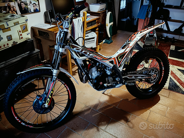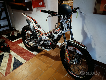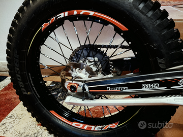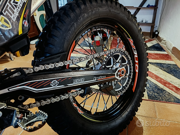 Moto con all'attivo 18 ore Demo della Trial Academy. Dalle foto si evince lo stato di usura minimo. La gomma posteriore di primo equipaggiamento ha ancora i segni nei tacchetti. Manubrio Domino piega alta ( + originale). Kit Omologazione Stradale nuovo in Scatola. Moto eccezionale.