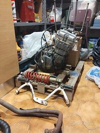 Vendo TT350 anno 2003 , documenti in regola, smontata come da foto per progetto restauro abbandonato per cause familiari. Prima di smontarla si è rotto l' alberino della leva per la messa in moto, unico danno. Chiedo 500 euro oltre voltura a carico acquirente. Primo contatto per whatsapp per cortesia. Leandro.