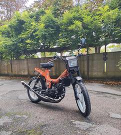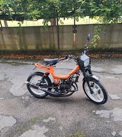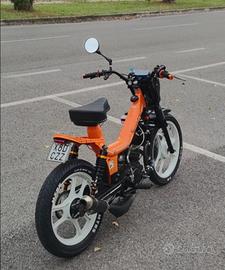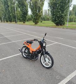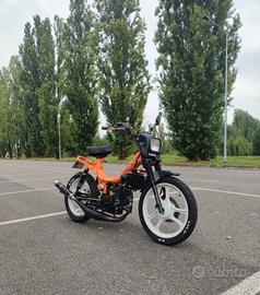 Motore Minarelli rv4 completamente revisionato e originale a liquido, mascherina anteriore fifty hf, silenziatore Giannelli in carbonio, ammortizzatori posteriori a gas nuovi, forcelle anteriori fifty con freno a disco revisionate e indurite, completamente riverniciato arancione a polvere e cerchi in lega bianchi, impianto fari a led sotto batteria, gomme nuove.