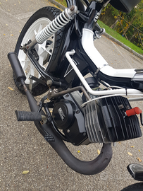 Monta motore Minarelli 50 cc a due tempi con cambio a 4 velocità, leggermente potenziato, tramite installazione carburatore Dell'Orto PHBG da 19 mm. e marmitta ad espansione della Motori Minarelli con silenziatore separato Marving ( originali dell'epoca, quasi introvabili ).