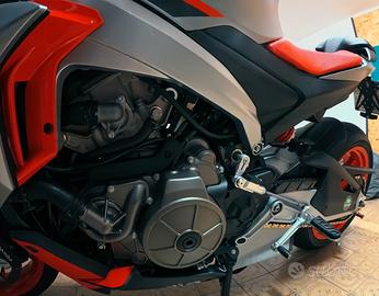 Vendo tuono 660 full optional immacolata pari al nuovo. Elettronica completa aprilia, quickshifter up and down , traction control, mappe complete alcune regolabili, navigatore, presa usb, Bluetooth, radio, imu 6 assi, abs regolabile, traction control regolabile. Trasmissione nuova (pignone nuovo, corona nuova, catena nuova (kit trasmissione ognibene d.i.d apriliaspecial parts). Cambio olio, tagliandi (castrol come da manuale) ogni 5000 km da fiorenzo agostini ufficiale aprilia, ovviamente tutto documentato con relative fatture. Grasso catena motul ogni uscita. Gomma anteriore 70% ok, gomma posteriore nuova pirelli rosso 3. Leve regolabili, para tappo serbatoio, flangia attacco borsa serbatoio, cupolino sportivo otiginale. Accessori originali cupolino maggiorato aprilia, leve originali. La moto è meccanicamente perfetta, esteticamente paragonabile al nuovo è immacolata visto che sono anche troppo fissato. Qualsiasi prova, perizia con il vostro meccanico di fiducia. Astenersi persone poco serie.