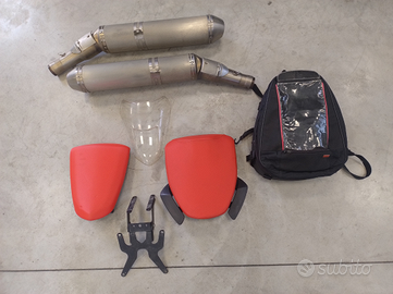 La moto viene fornita con i seguenti ulteriori accessori: unghia monoposto originale, sella passeggero originale, sella passeggero confort, scarichi originali, cupolino originale e borsa serbatoio Aprilia. Possibilità di acquistare garanzia valida in tutta Italia fino a 48 mesi dall'acquisto (garanzia moove).
