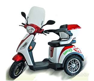 Ufo 3 scooter elettrico per chi ha uma riduzione della mobilità motoria. Consegnato e MAI utilizzato. Batteria nuova. Vd in foto presenza di imballaggio su manopole, sedile e contakm.
