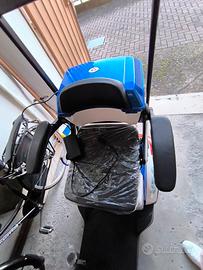 Parabrezza, specchietti, tettuccio anti pioggia, bauletto, radio ed MP3, sedile girevole, sistema anti impennata, completa di cavo di ricarica, poggia braccia snodati, vani portaoggetti.