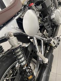 URBAN SCRAMBLER BY TPR colore GRIGIO km: 2824 normativa inquinamento: euro 3 Garanzia 12 mesi con assistenza stradale Urban Scrambler by TPR, moto iconica che non ha bisogno di presentazioni, elaborata dal noto preparatore milanese TPR.La moto è stata protagonista di vari concorsi ed articoli. Completamente rivisitata nel suo bicilindrico parallelo e nelle sue caratteristiche. https://www.fedrotriple.it/special_urban_tpr.html Scheda Tecnica: Tipo di motore: Bicilindrico parallelo, 4 tempi Cilindrata: 790 cc Alesaggio per corsa: 86 x 68mm Compressione: 9.2:1 Valvole per cilindro: 4 Alimentazione: Doppio carburatore Keihin CVK da 36 mm Raffreddamento: Aria Potenza: 75 Cv a 8,000 giri Copia massima: 72 Nm a 5,500 giri Cambio: 5 marce Freno anteriore: Disco da 310mm con pinza a 2 pistoncini Freno posteriore: Disco da 255mm con pinza a 2 pistoncini Pneumatico anteriore: 110/80-19 Pneumatico posteriore: 140/80-17 Lunghezza: 2230 mm Larghezza: 840 mm Altezza: 1100 mm Altezza sella: 775 mm Interasse: 1500 mm Peso a vuoto: 185 kg Quasi introvabile in queste condizioni.  Consegniamo in tutta Italia isole comprese. Tutti i nostri veicoli sono completamente finanziabili. Se hai un veicolo in permuta inviaci le foto e una breve descrizione, ti invieremo il nostro miglior preventivo. Per ulteriori informazioni e preventivi ti aspettiamo in Concessionaria.