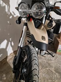 Vendo V85 TT Travel E5 color sabbia. Versione Centenario. Presenta tutti gli accessori della travel del 2021 (manopole riscaldate, guzzi Mia, cerchi tubeless, plexi alto, faretti di profondità, cavalletto centrale) + barre paramotore. Mai caduta, sempre tagliandata in concessionaria Guzzi Modena, bollo e revisione fatti da poco. Metzler Tourance Next2con 4000km, nessun lavoro da fare. In aggiunta piastra Givi in alluminio. Zona Modena e limitrofi