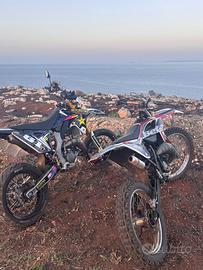 La moto monta il maxi kit tpr 86 monofascia in ghisa, frizione polini, pacco lamellare stage 6 alza pacco stage 6 collettore polini 360 gradi, filtro stage 6una stella, carburatore pwk stage 6 28, secondo radiatore , pompa dell'acqua maggiorata stage 6, carter frizione nuovo, mvt dd appenainstallata, faro a led, grafiche Rockstar con plastiche bianche, leve freno blu , paramani rtech, gomme pirelli diablo rosso nuove, pastiglie freno anteriori e posteriori nuove e faro a led.