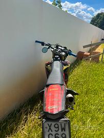la moto monta dr 70, carburatore 19, aspirazione completa, filtro malossi, frizione e molle rinforzate, la moto ha 11000km, pistone e cilindro rifatti 3 mesi fa, gomme diablo rosse con meno di 2000km, la moto presenta piccoli graffi e minime imperfezioni
