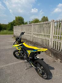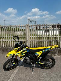 moto tenuta in ottime condizioni monta: -top 80 con pistone e biella polini appena cambiate con all’attivo 3.000 km - doppio radiatore - frizone rinforzata - gas rapido - yasuni r2 - carburatore 21 - pacco lamellare VL6 malossi - catena , corona e pignone nuovi - porta targa pieghevole - gomma ant. e post. 70% - pastine e dischi nuovi cedo anche i pezzi originali come scarico completo, paramani….