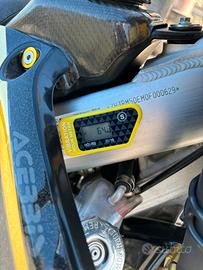 Personalizzata da cima a fondo dalle grafiche personalizzate, varie parti anodizzate oro, vari pezzi in carbonio e altri particolari.