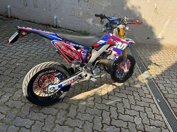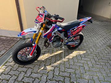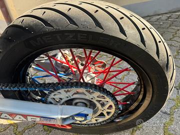 Vendo Valenti SM 50 in perfette condizioni sia di meccanica sia di carrozzeria,la moto non presenta nemmeno un graffio né sulle carene né sui cerchi e il motore oltre ad avere pochissimi km 4000 circa (mio figlio praticamente non lo ha mai usato perché aveva la microcar) a causa di un guasto della pompa dell’acqua lo scorso settembre abbiamo dovuto cambiare pompa acqua-pistone e cilindro il tutto documentato con fattura e pertanto ancora oggi è sempre in rodaggio perché e stato rimesso in garage e tolto 15gg fa per fare la revisione-gomme metzler appena montate ,cambiate perché non utilizzandolo si erano indurite, le carene presentano grafiche personalizzate fatte da Curzio Disign, ha la marmitta Dbr ma viene fornita anche l’originale Valenti -motore veramente bello bello , per qualsiasi altra info-foto o visione contattatemi Prezzo trattabile